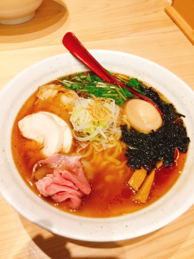 見た目は醤油ラーメンに見えるのだが、そうではない。口に含むと、魚介の味が広がる。思ったよりかなり濃厚な旨味があるスープである。