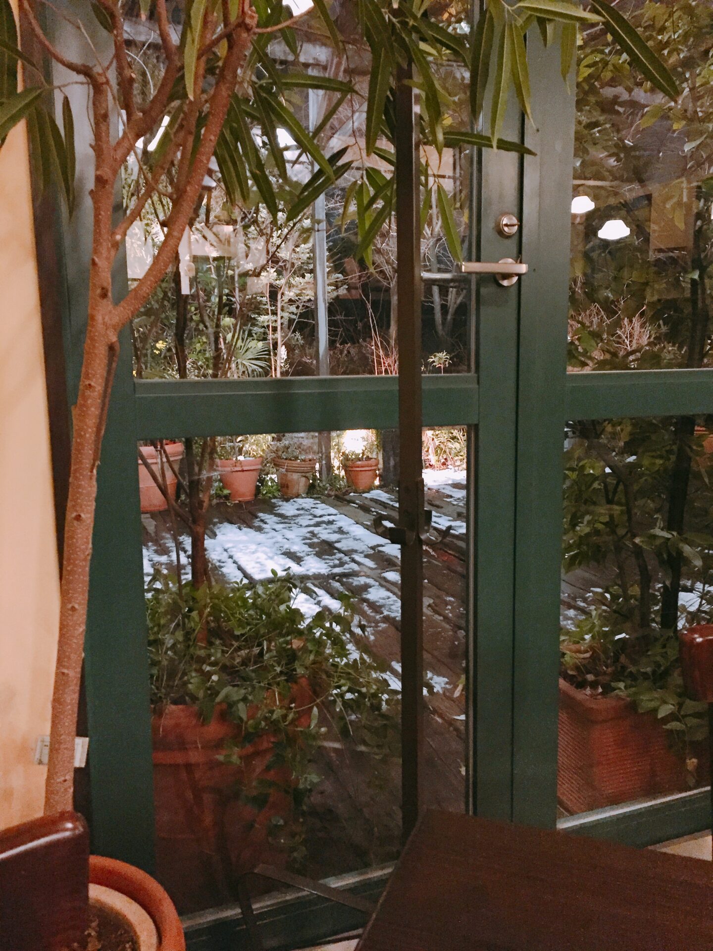テラス席も気持ちよさそうだが、流石に雪が積もっているので外には出ない。