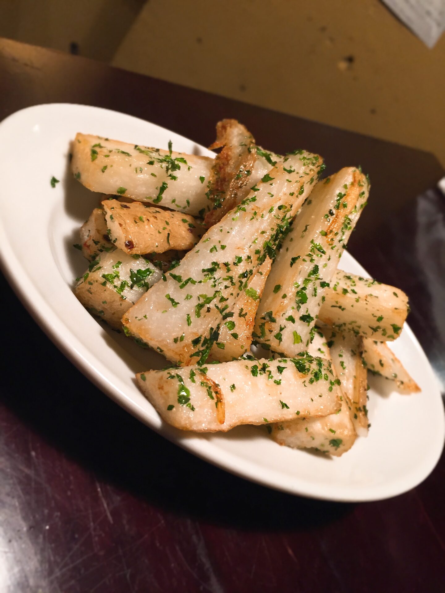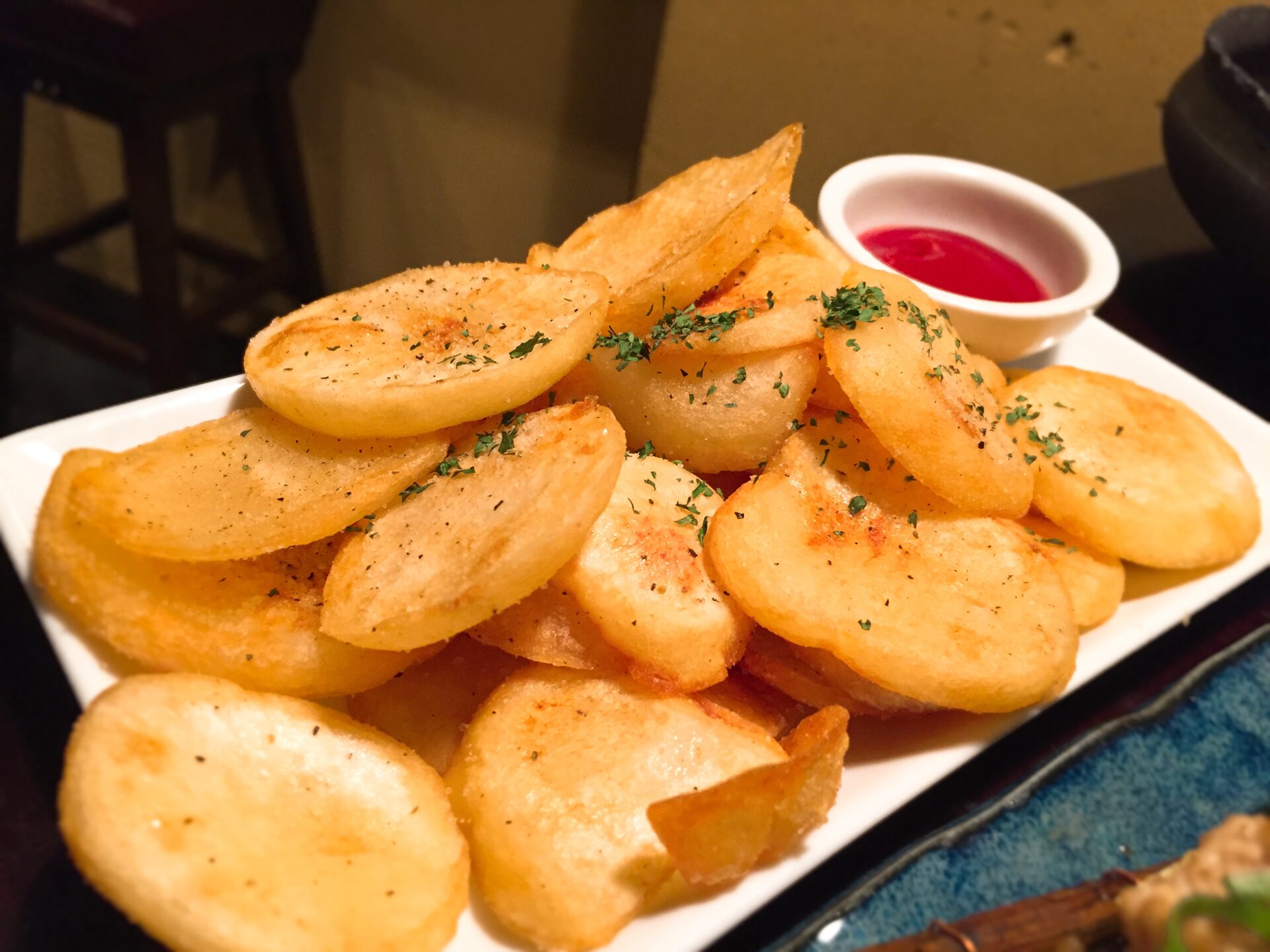ニンニクと一緒に揚げてあるというだけなのだが美味い。中はホクホクである。