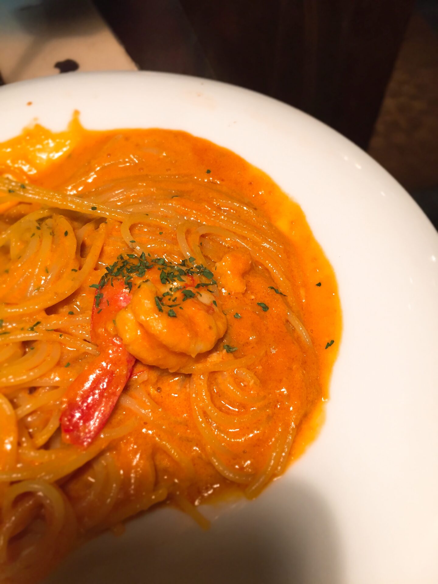 最後にパスタ。大ぶりのエビも入っていて満足感がある。パスタも美味い。