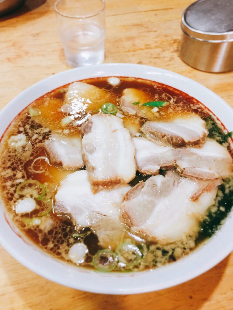 バラのチャーシューはホロホロ、ネギは甘い。そして、メンマが甘い。ニンニクやコショウを入れながら食べると味を変えて楽しめる。