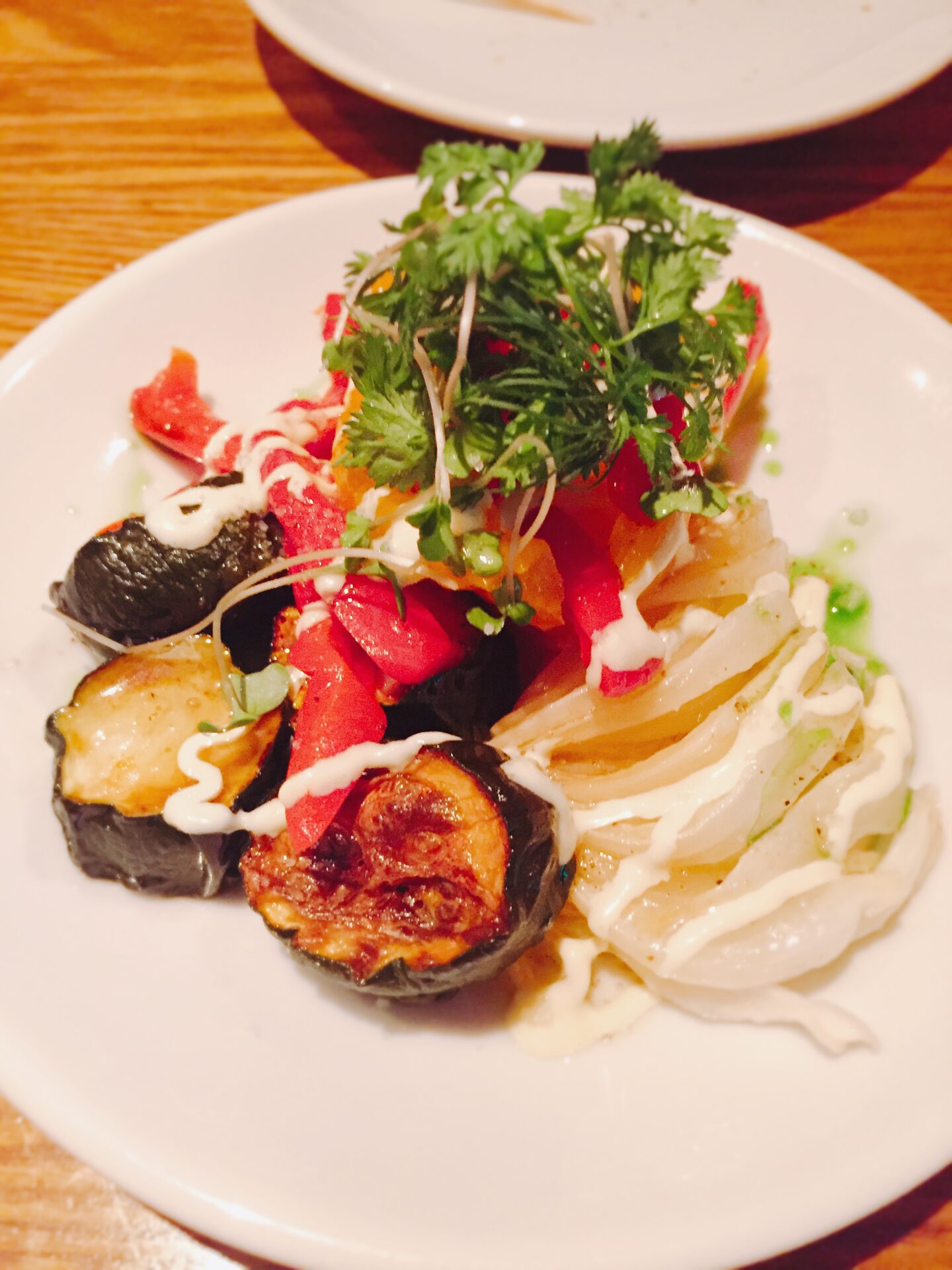 ズッキーニやパプリカ、玉ねぎを炒めたもの。美味い野菜だと、火を通すと甘みが凝縮される。自分では出来ないなと思う。
