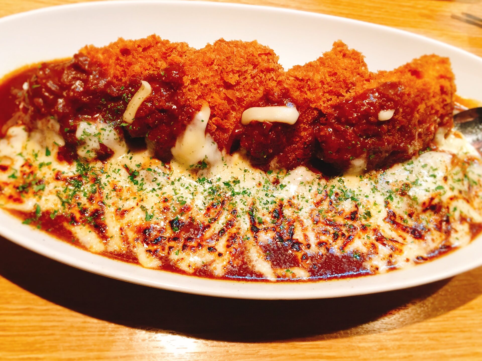 私はチキンカツにチーズを炙ったものを注文。