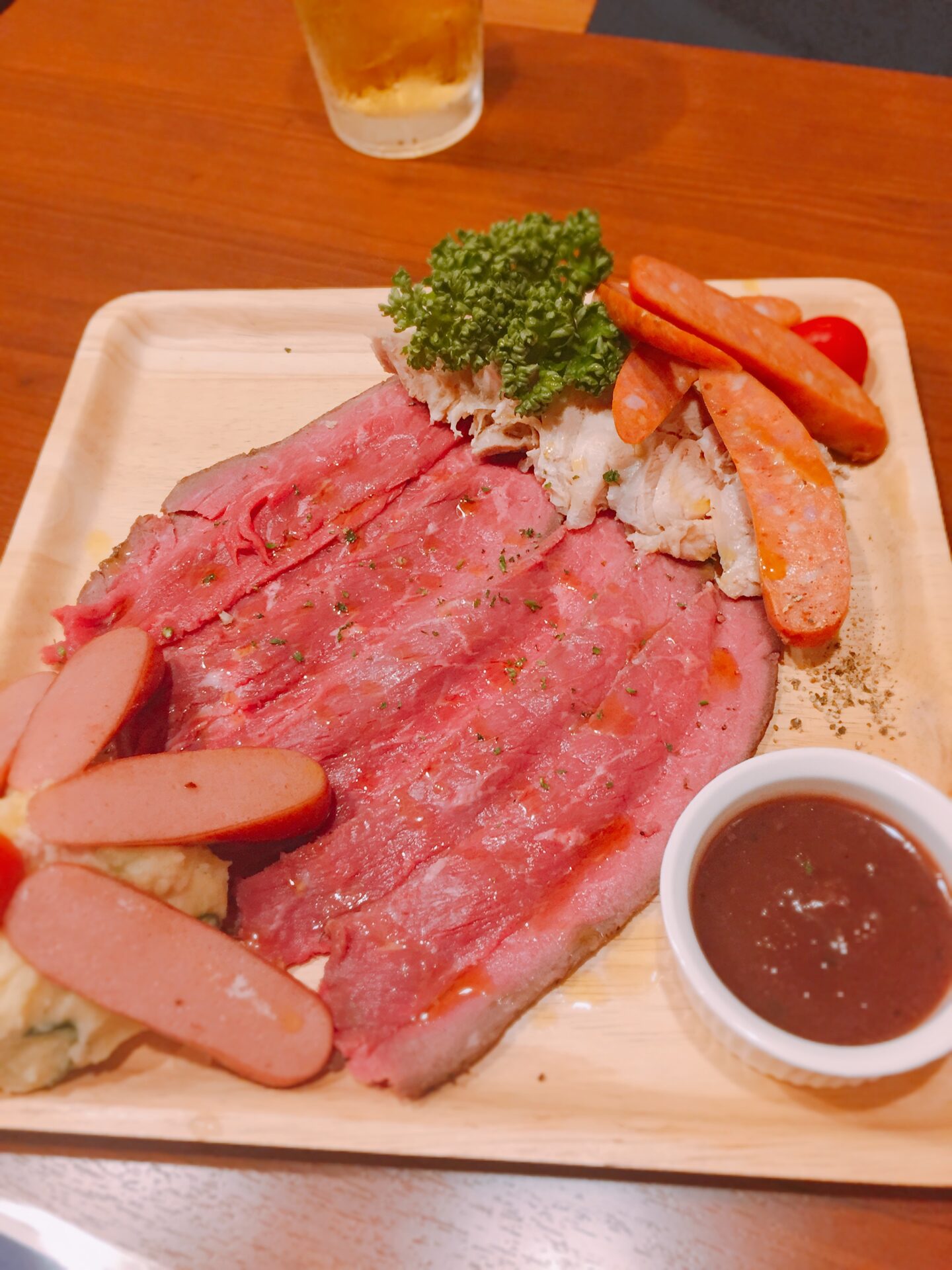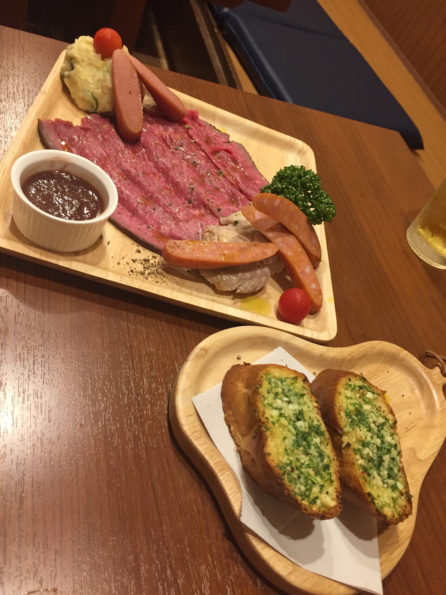 盛り合わせ。これが一番お得かも。ローストビーフやチョリソー、ポテトサラダなどもある。