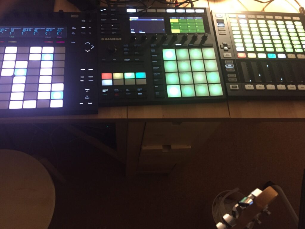 私は右利きなので、PUSHは右側にあったほうが使いやすい。で、左側にMaschine mk3を配置するのがやりやすかった。