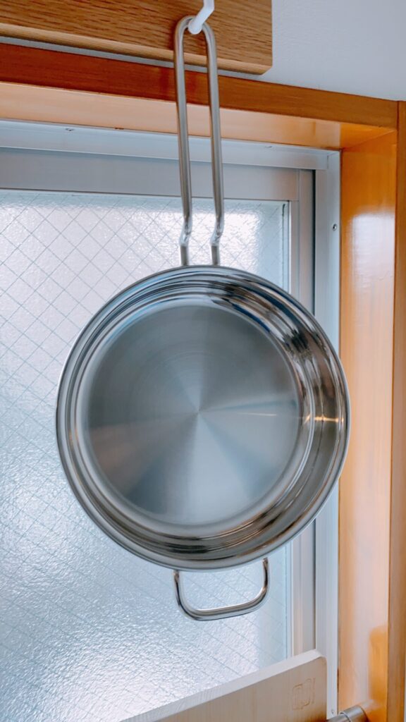 あとは、根菜なんか入れておく籠とフライパンの蓋なんかを掛けられるものをちゃんとすること。だめになってる電気ケトルを入れ替えること。このあたりはちょっと考えたいです。