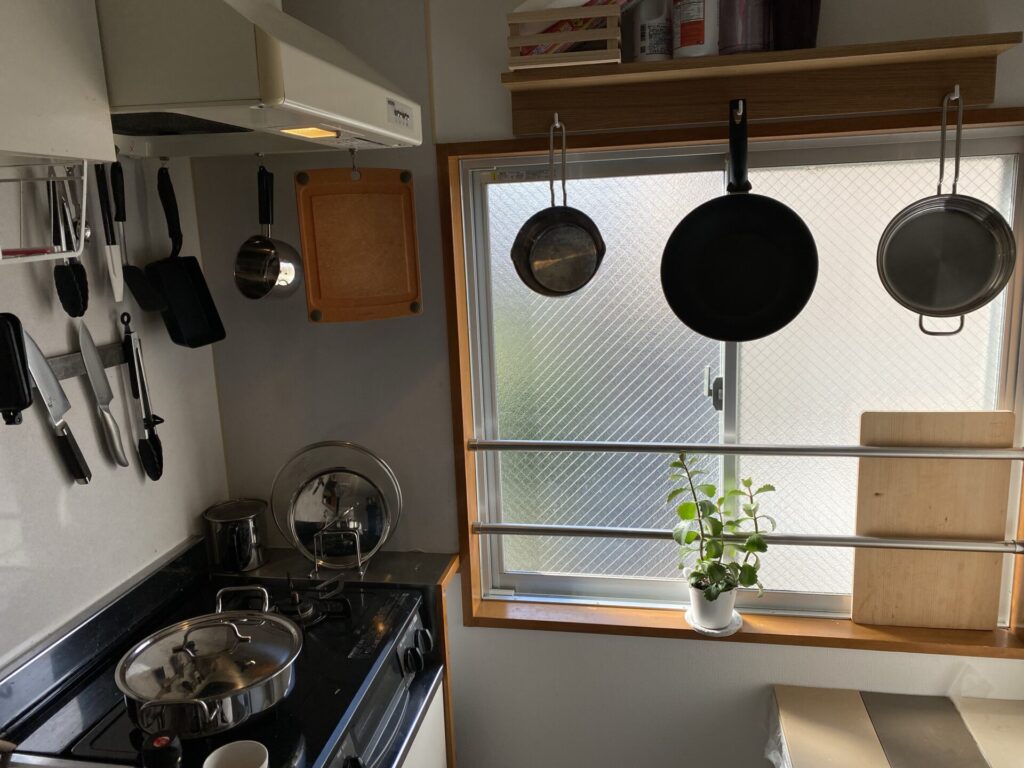 ガスレンジ下の物を出すのは出せなくはないけど面倒でした。フライパンなどを置く場所も確保するのが難しかった。