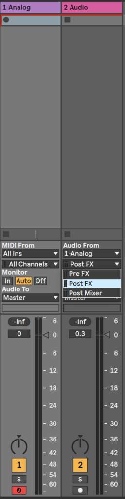 この場合は、Analogのトラックの音を録音したいから、Audio FromをAnalogというトラック名から選ぶ。ここまでは簡単だよね。