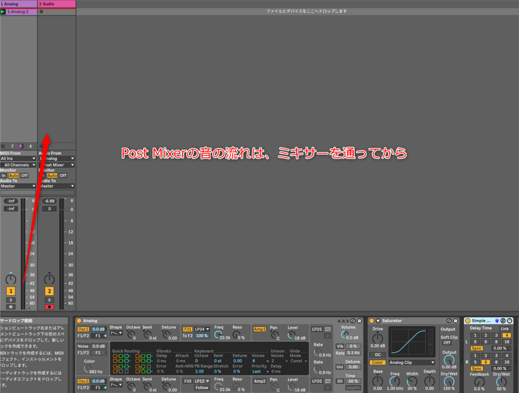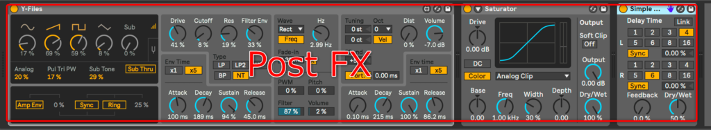 POSTはあとという意味だから、エフェクター掛けてから、Ableton Liveのトラックに流れるってことだね。