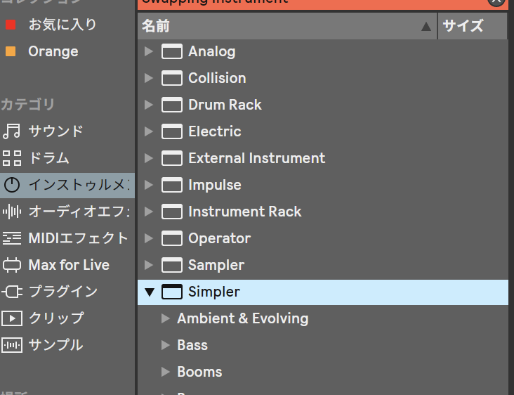 大丈夫。Simplerの仕組みを考えたらわかるから。Simplerは区分の上ではサンプラーだよね?だから、デバイスということは間違っていない。他のインストゥルメントの違いってなんやろうね。