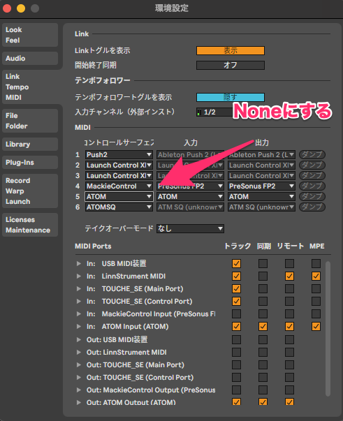 ただ、このモードにする場合は、ATOMのAbletonインテグレーションをオフにする必要があります。単なるパッドにするということですね。