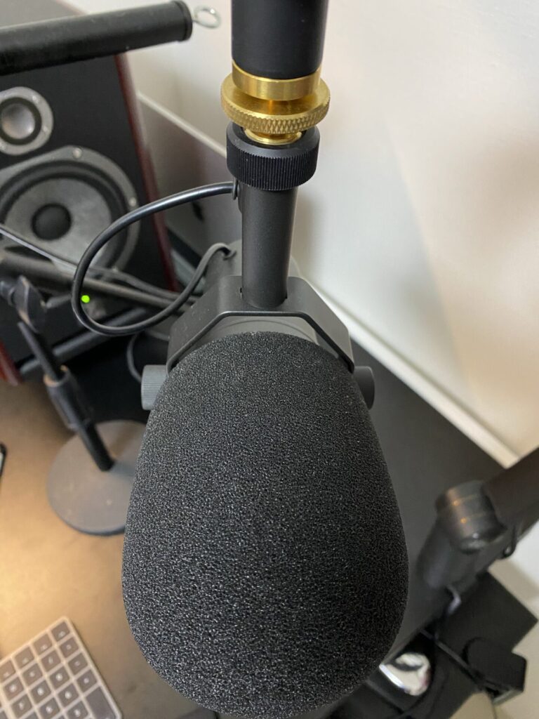 SM-7Bはダイナミックマイクですけど、コンデンサーマイクくらいごついのでコンデンサーマイクをマウントできるスタンドでケーブルが目立ないものにすればいいという結論になりました。