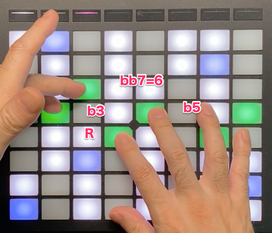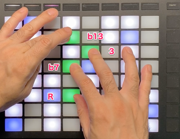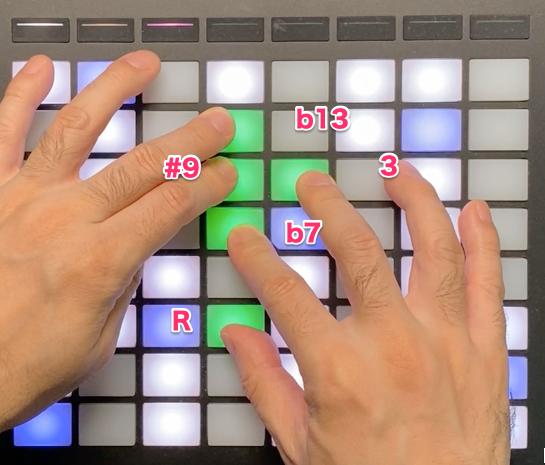 バップ的なラインをパッドで弾きたい人はこういう典型的な代理コードのアルペジオを覚えておくとアドリブのとっかかりになるかもしれません。