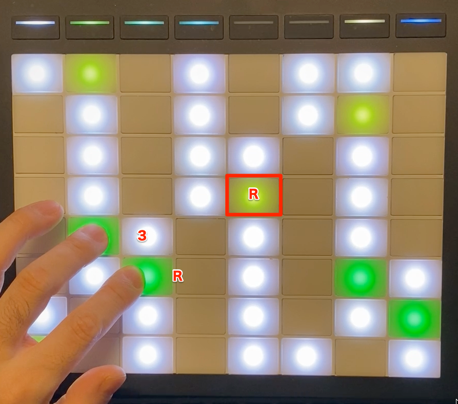 パッドの場合、ターゲットノートの半音下、もしくは全音下からプレイすることがプレイしやすいと思います。別に上から弾いても良いんですが下から弾くほうが楽ですね。