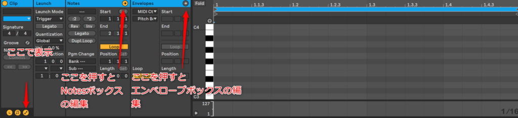 Start EndとかNotesボックスにでてきた項目があって混乱するかもしれないけれど、これは、クリップエンベロープの項目だよね。