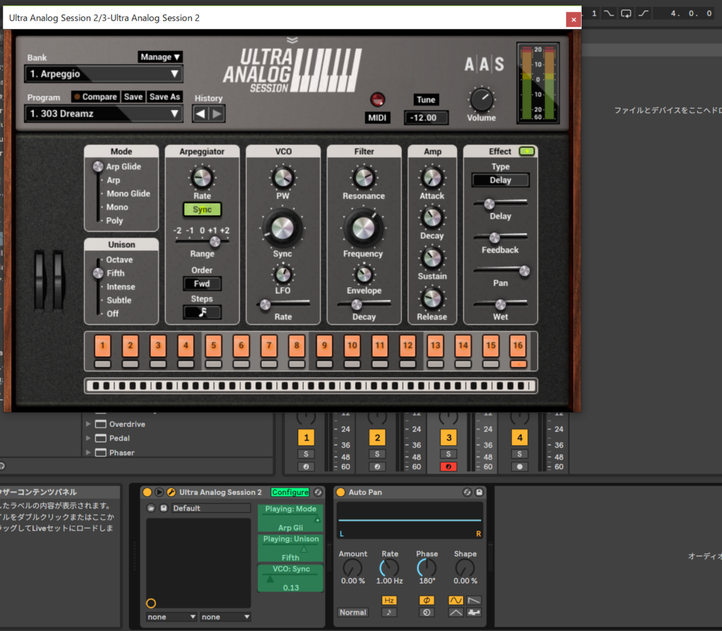 もちろん、これはVSTinstrumentでやったけど、エフェクトでも同じことだからね。純正のAutoPanを見てみようか。