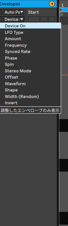 純正じゃない場合は、クリップエンベロープコントロールセレクター(あかん、舌噛みそう、Liveのインフォビューに出てくる名称ではコントロールチューザー)にはパラメーター全部出てこないからね。