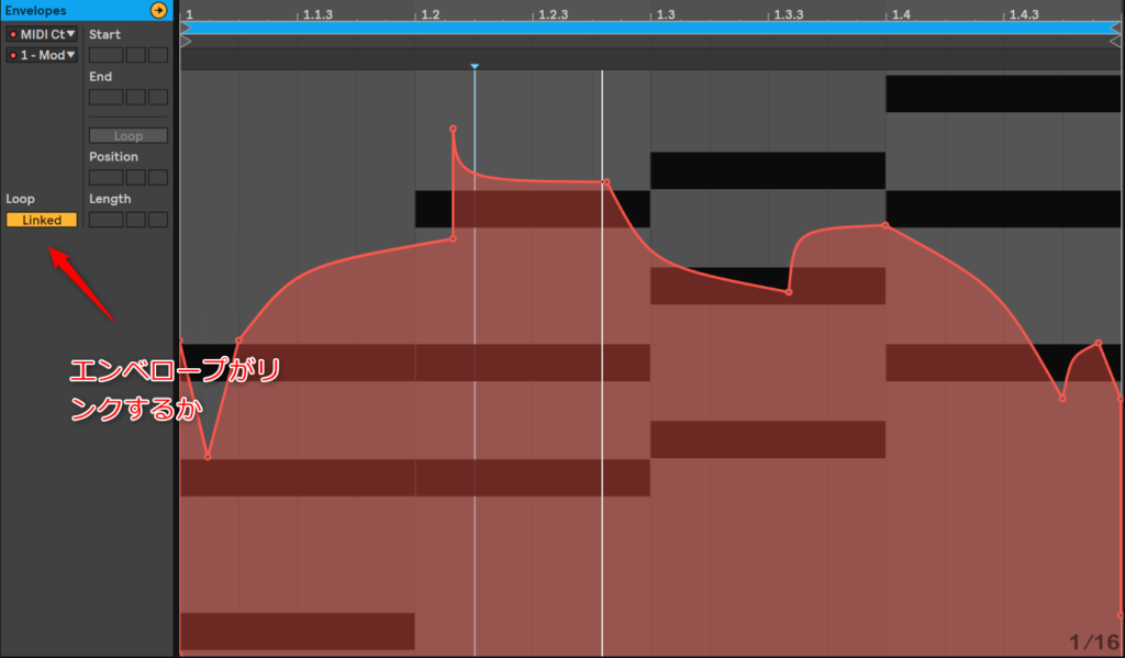 当たり前やけど、Loopとリンクするってことは、エンベロープのループの始点と終点を一致させるってことやろ?