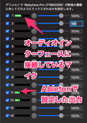 BabyFacePro上でマイクが接続しているチャンネルが聞こえないようにしても、録音はされてしまうということです。