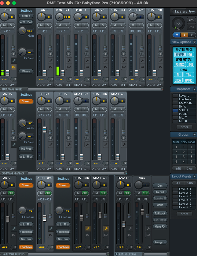 実はブログを更新していない期間、Apolloも使っていたのですがTotal Mixが使えることが重要だとわかったので手放しました。次もRME買いますね。
