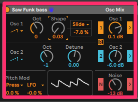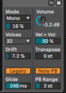 この歪みは他のAbletonのシンセにない特徴なので、積極的に活用したいですね。