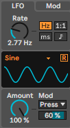 フィルター、ピッチなどなどにアサインしてもいいのですが、PUSHのSlideやPressでモジュレーションはコントロールしたいので使っていませんが、シンセなどで普通に使いたい場合はModWheelに設定すればいいと思います。