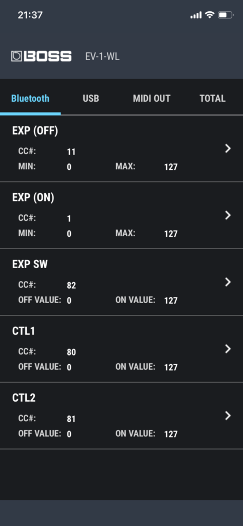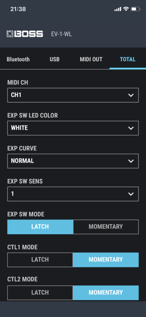 MIDI CCが複数出力できるのはめちゃくちゃ便利です。スイッチを踏み込んだら、ワウ、スイッチを切ったらボリューム。そう言うこともできるわけですね。普通のエクスプレッションペダルではできない芸当です。