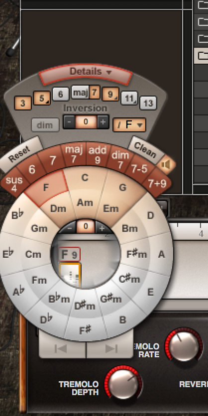 Dm7をF7(9)に変更してみました。あ、この画面ではわからないと思いますが、オルタード・テンションにすることも可能です。