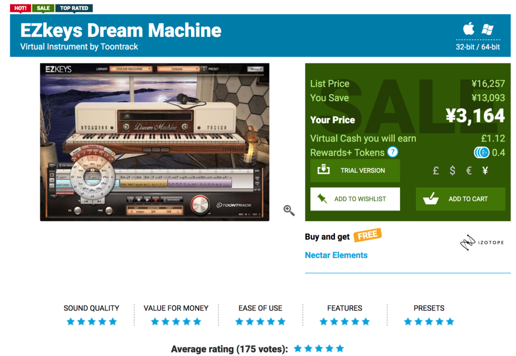 時々セールやるので、セールの時に購入されるといいと思います。本家toontrackが一番安いときもあるので、比較されるといいと思います。