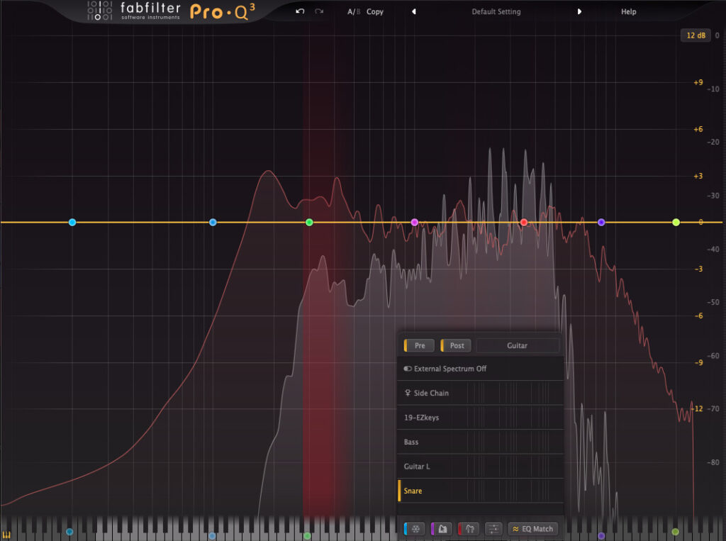 DAW付属のEQだとこうはいかない。そもそも正確にどこがピークであるかということも見て確認した上でEQポイントを作らなきゃいけない。
