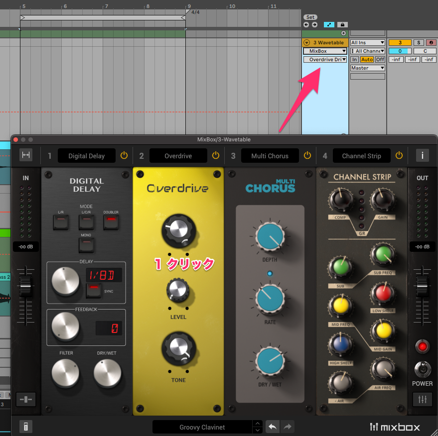 便利な使い方としては、同じエフェクトでも設定違いの2つをオン・オフで切り替えればトラック数増やさずに済みますね。私はトラック増えるのが嫌なので結構使います。若い人ならトラック分けると思うんですけど、目がきついからね…