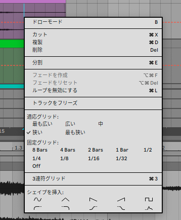 クリップは2小節あるけど、クリップの中の音は1小節と2拍であとはノイズしかない場合なんか、後の2拍はボリュームをゼロにしたいですよね。こう言うときに便利。