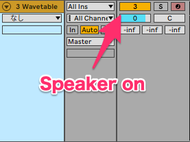 同様に,pan,sendなどもアレンジメント上でクリックすると一瞬ですね。地味ですけど、Speakerのオン・オフなんかもできます。