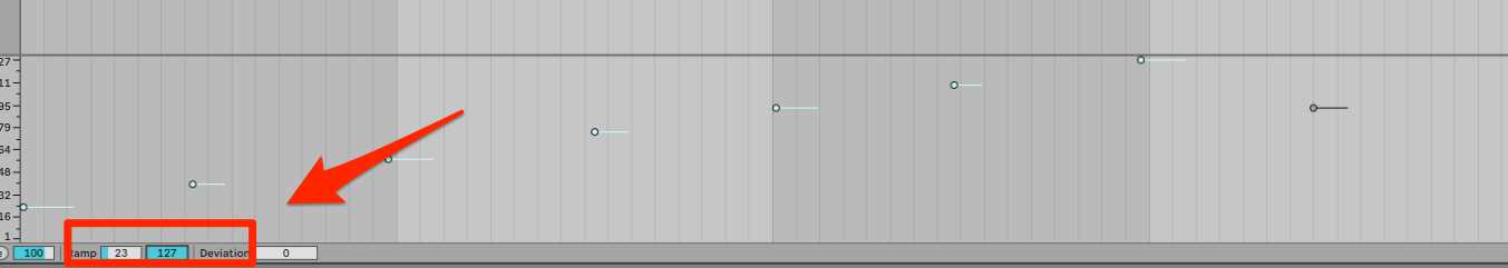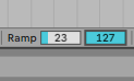 MIDIノートを選択して、Rampの始点と終点の数値を入力すれば簡単に表現できます。