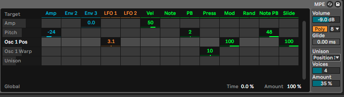 WavetableはMPEの設定がAbletonの付属の中で1番簡単なんですよね。マトリクスですぐ選べるので、Samplerより活用してます。