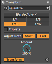 両方とも押すと発音の位置も長さ(発音の終わり)もクオンタイズされるということですね。ドラムだと長さはあまり効果がわかりませんけど、レガートしたいときなどに便利なのでは?