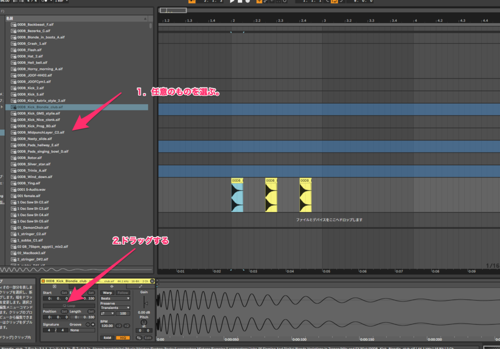 アレンジメントにサンプルを貼ってドラムのパターンを作ろうとする時、このキック、タイミングはいいんだけど、音色変えたいという時ありますよね。