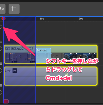 - スクラブバーの上部をシフトキーを押しながら消したい範囲をドラッグ(Iでin,OでOutのショートカットキーもある)2024/11/03 追記