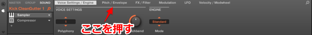 上の、Pitch/Envelopeを選択してください。