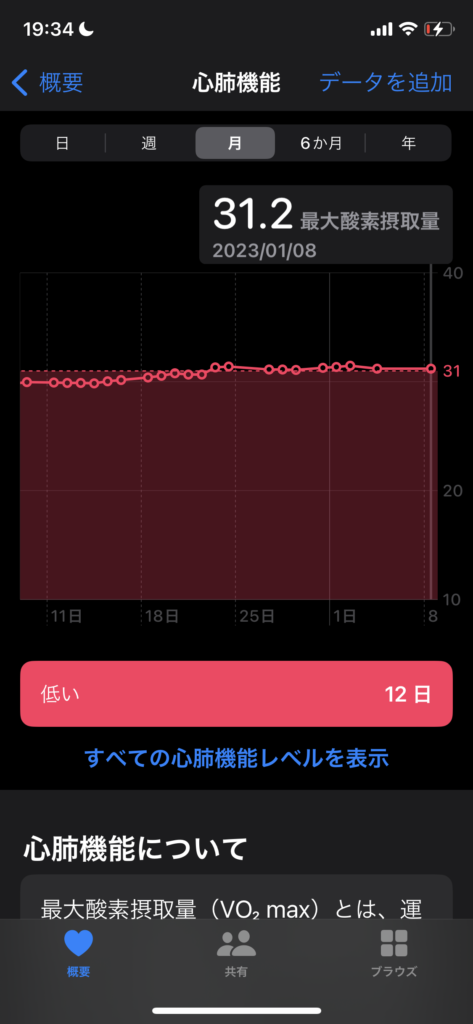 歩くことは、10月、11月とかなりやったのですが、VO2MAXは変化が見られなかった。