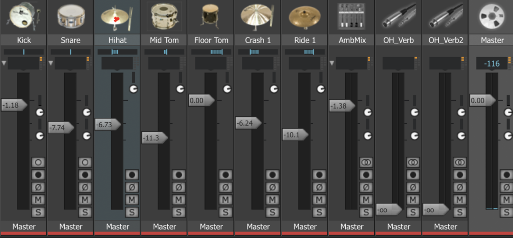 ただ、その前にいくつか設定しておきたい。ミキサーでドラムのパーツの順番をドラッグ・アンド・ドロップで並べ替えておくといいよ。