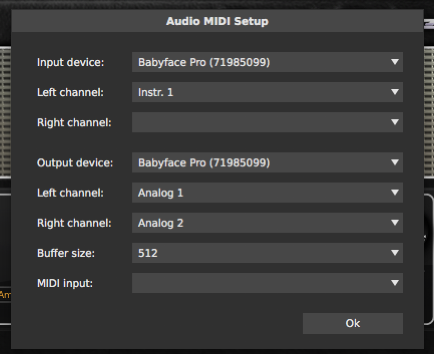 Amplitubeに普通に設定したんですが、なぜか動かない。できないわけないし、問題はないですけど、ちょっと気持ち悪いですよね。