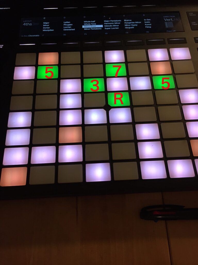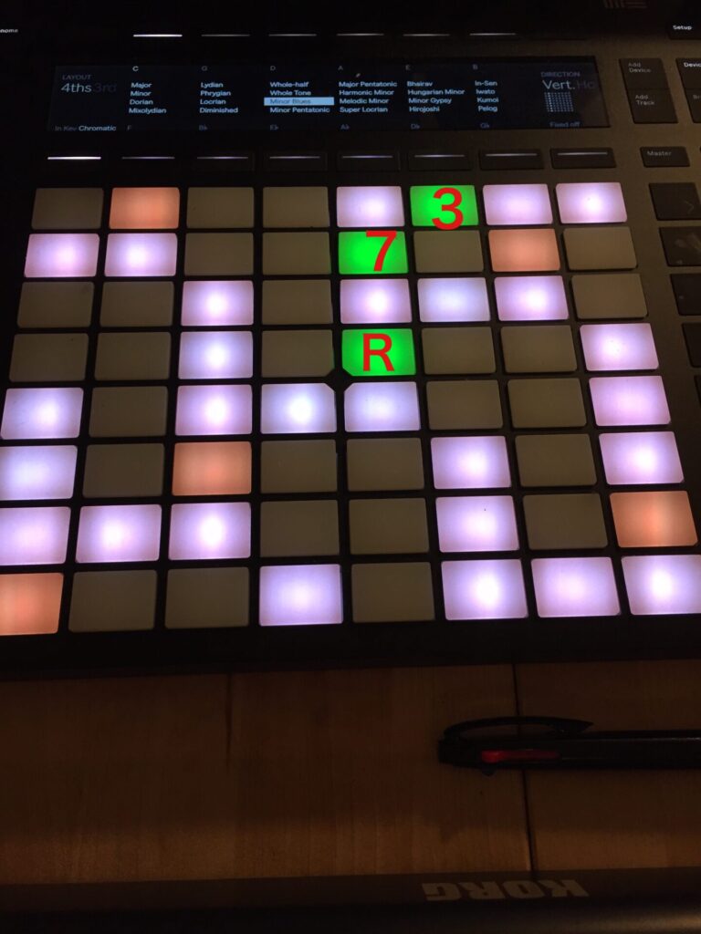 省略の一般的なルールは、まず、5度を省略、次にルート。えっ?って思うかもしれないけれど、ベースがいる場合は最低音を示してくれているからルートも省略できる。鍵盤の様にギターやPUSHは演奏する事はできないので、省略は意識する。まあ、PUSHはギターよりクローズドヴォイシングは得意やけどね…