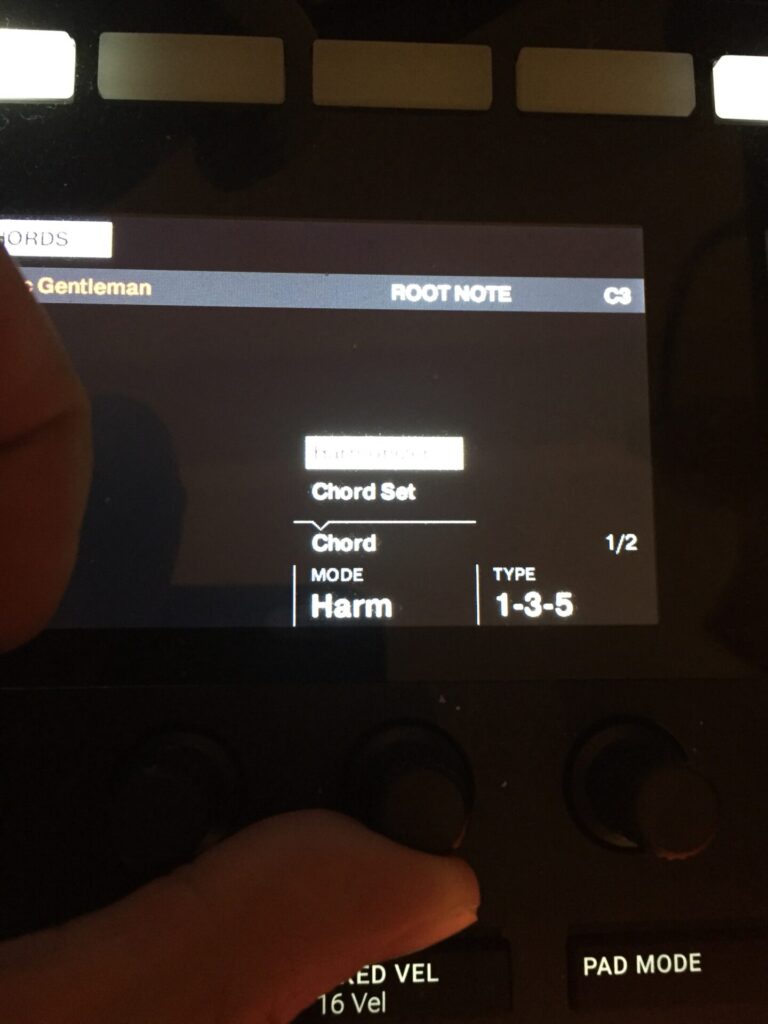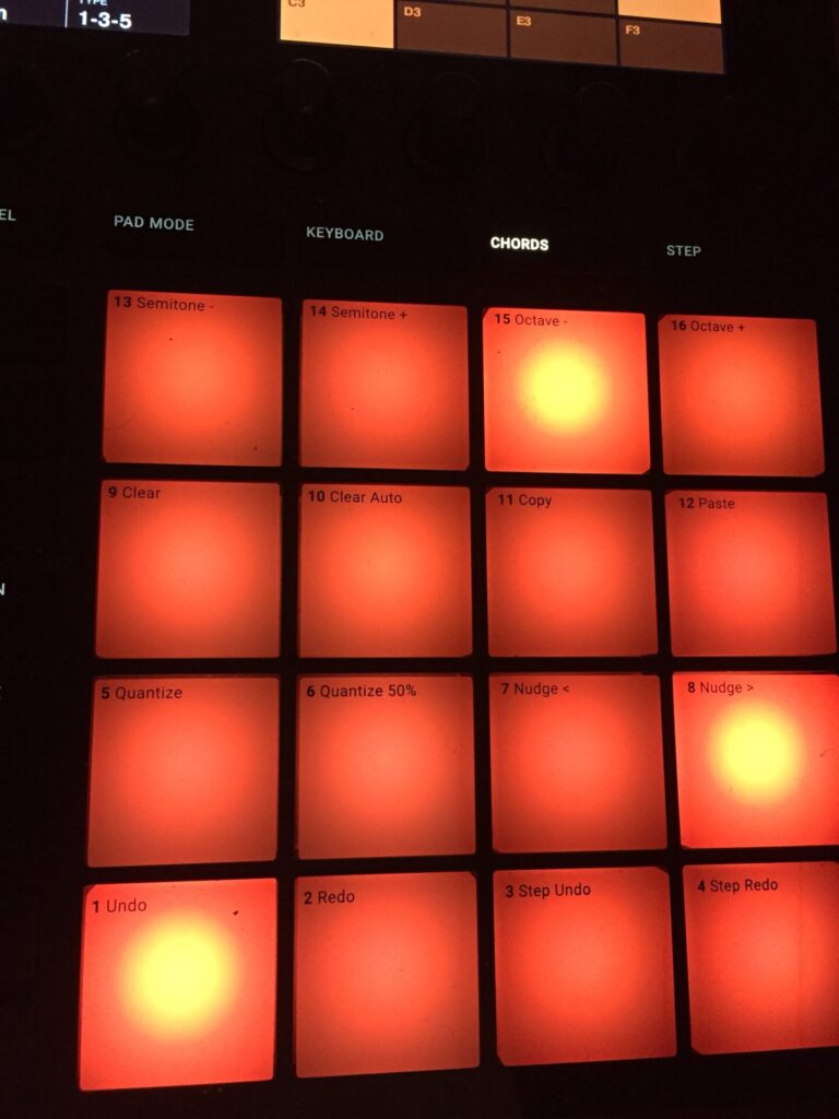 パッドの右上のCHORDSをおしたら、コードモードになりました。やったー。