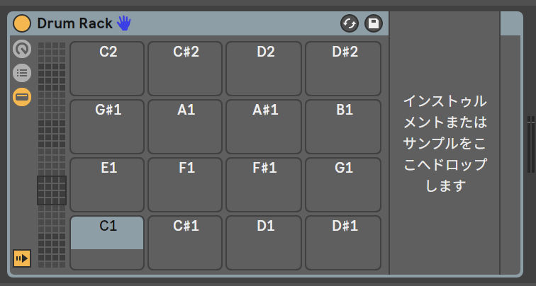 C1にペダルハイハットを配置してという形になるね。Drumrackの順番に合わせてやっていくことになる。