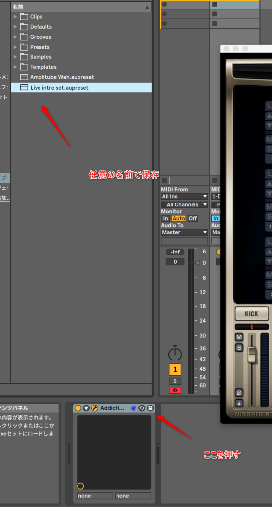 そして、Ableton Liveでも保存しておかないといけないね。保存しておけば、今後呼び出す時に簡単になるから。