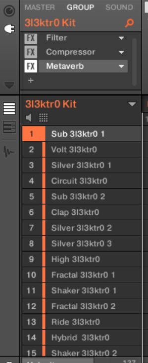 んじゃ、ちょっとドラムで考えてみるね。ドラム全体やからGroupやね。
