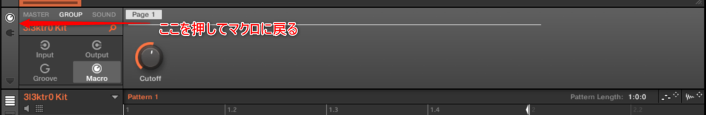 コントローラーでshift+Macroキーを押す(これはmk3の場合やよ)Maschineは基本的にShiftキーを押すと、コントローラー上で小さい文字の機能を選択することになるね。