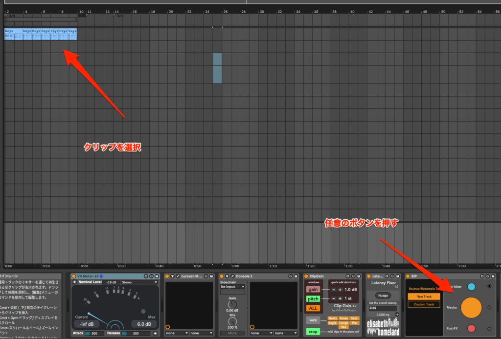 Abletonの直系というか、兄弟的DAWであるBitwigにもバウンス・イン・プレイスは機能としてあるのですが、Abletonには純正の機能としてバウンスというものは存在しません。絶望ですね…