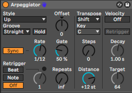 アルペジエイターはいろいろ遊べるMIDIエフェクトですけど、ドラム使ってもなかなか便利。